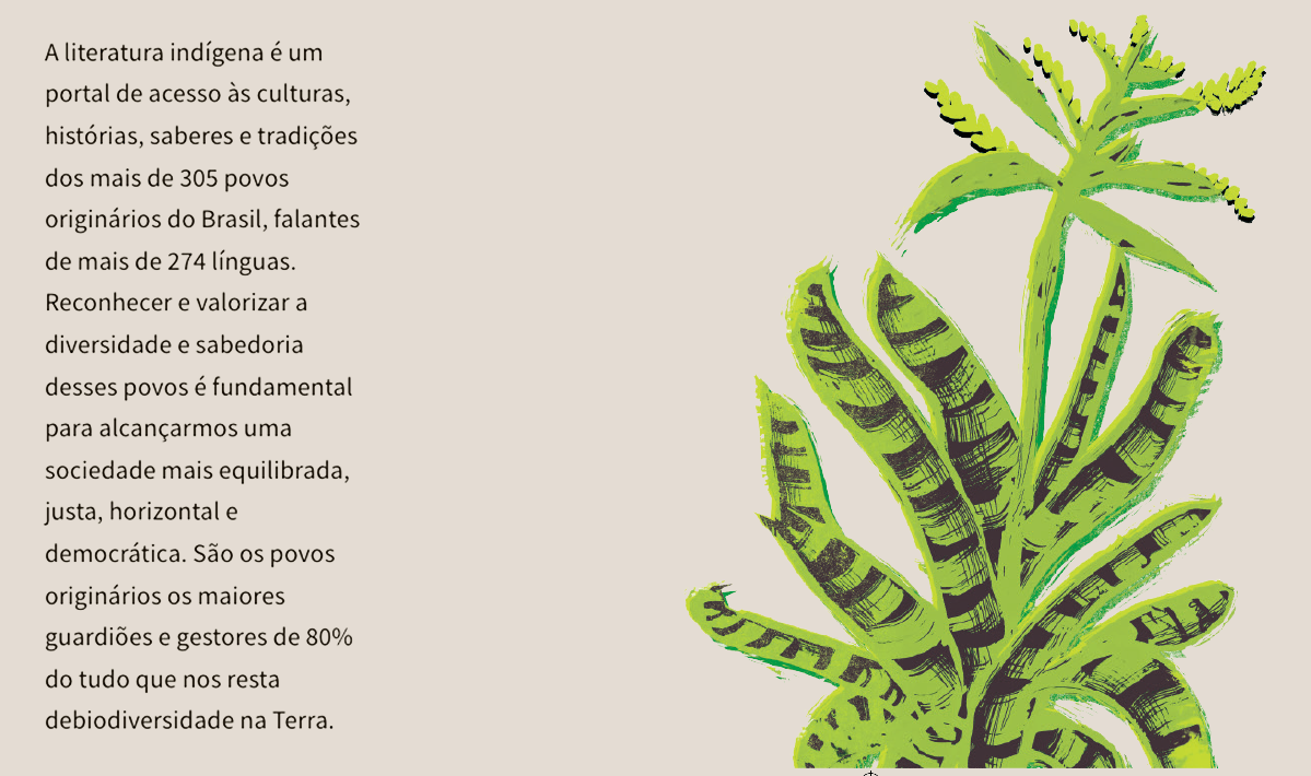 Auritha Tabajara, Bruna Karipuna, Chirley Maria Pankará, Eliane Potiguara, Glicéria Tupinambá, Lidiane Damaceno Krenak, Márcia Mura, Naine Terena, Simone Karajá, Telma Taurepang, Trudruá Dorrico, and Vanessa Kaingang are the authors of the narratives, illustrated by Mauricio Negro.